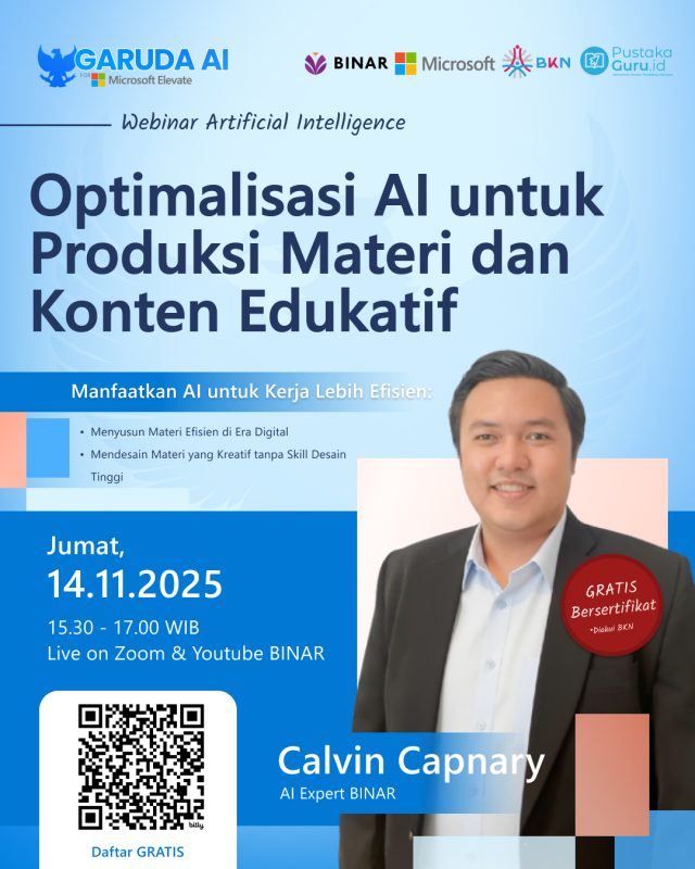 #GarudaAI #PustakaGuruIndonesia #GuruBerinovasi #DigitalLearning #Microsoft #BKN #BINAR #ASNDigital #WebinarAI #WebinarGratis #PelatihanAI #KarierDigital