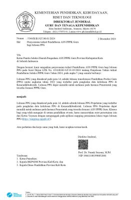 “Hallo Bapak Ibu Mas dan Mba calon peserta seleksi Prgawai Pemerintah dengan Perjanjian Kerja Guru ada penyesuaian ya terkait pendaftaran Aparatur Sipil Negara Pegawai Pemerintah dengan Perjanjian Kerja Guru bagi lulusan Pendidikan Profesi Guru…”, ujar Nunuk Suryani. Penyesuaian tersebut sebagaimana dalam surat berikut.
