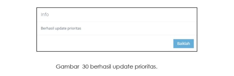 7. Setelah prioritas berhasil terupdatei, status prioritas baru akan tampil pada kolom status prioritas.